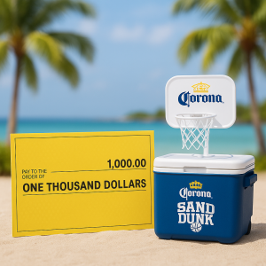 Ninety (90) First Prizes (fifteen [15] awarded per Monthly Entry Period): A Corona-branded “Sand Dunk” cooler with basketball hoop (ARV $700 each).