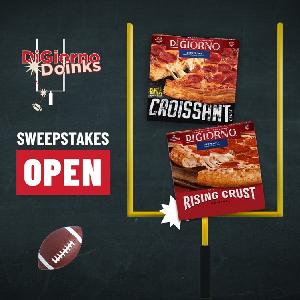 If, and only if, the football makes contact with an upright goal post, or the crossbar of the field goal, during a field goal or extra point attempt during the Game, two thousand five hundred (2,500) prizes will be available to be awarded. If, and only if, the football again (i.e., for a second time) makes contact with an upright goal post, or the crossbar of the field goal, during a field goal or extra point attempt during the Game, an additional one hundred (100) Prizes will be available to be awarded. Each prize consists of one (1) DiGiorno pizza, awarded in the form of a coupon (each a “Prize”). Approximate Retail Value (“ARV”) of each Prize: up to $11.99.