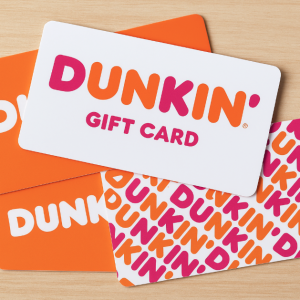 One (1) First Prize: Prize package includes a $100 Dunkin' gift card, one (1) Dunkin' Neck Wrap, one (1) Dunkin' Deck of Cards, one (1) Dunkin' Enamel Pin, and one (1) Dunkin' Donut Candle. ARV: $138.73.