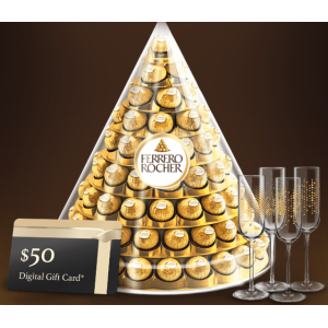 One hundred and twenty (120) Instant Win Prizes: Each Instant Win Prize will consist of one (1) Ferrero Rocher T96 Pyramid box of chocolates (96-piece gift box), four (4) custom Ferrero Rocher glass champagne flutes, and one (1) digital ReserveBar gift card with a fifty-dollar ($50) value. ARV $100.00 each.