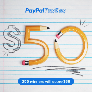 TWO HUNDRED (200) PRIZES: $50 transferred into winner’s PayPal account.