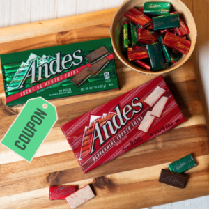 (25) Winners: Each winner will receive 1 coupon to redeem for a free 4.67 oz box of Andes Mints