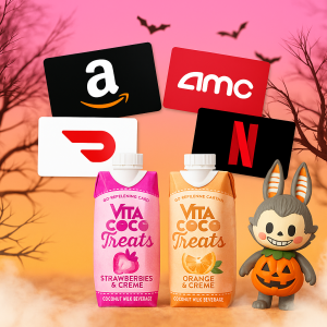 - 1st Prize (8 Winners): A $100 Amazon, AMC, DoorDash, or Netflix gift card, four cases of Vita Coco Treats, and a mini costume for your Labubu!