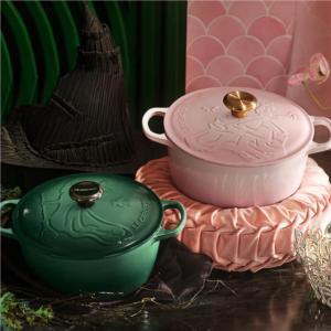 SIX (6) PRIZES: Each of the six (6) winners will receive one (1) Le Creuset Signature Round Dutch Oven, 4.5 quarts, in either the Glinda or Elphaba design. Prize design cannot be requested and no substitution will be made. Glinda Round Dutch Oven comes in a shell pink exterior with a Signature light gold 57mm knob and cream colored interior. Elphaba Dutch Oven comes in an artichaut exterior, with a Signature black nickel 57mm knob and Matte Black interior. ARV: USD $450 per each prize.