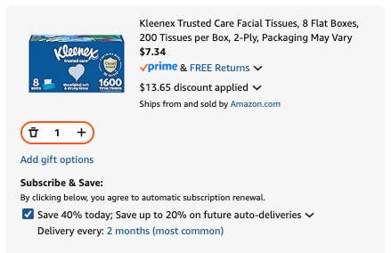 What is Subscribe & Save? Amazon's Subscribe & Save program saves you 5% on your auto-delivery item(s) every month. Unlock 15% savings when you receive 5 or more products in one month. All Subscribe & Save orders ship for FREE with no minimum purchase required. Subscriptions can be cancelled anytime after the order ships. You are under no obligation.