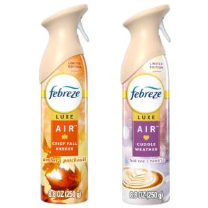 Grab the Febreze Air Mist Air Freshener Spray for just $1.49 in Cuddle Weather Scent and/or Crisp Fall Breeze Scent (regularly $3.99 each). This Amazon deal is limit 1 per scent at the discounted price and drops even lower to $1.32 with Subscribe and Save.