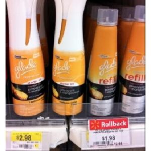 Be sure to pick up a Sunday paper this weekend, because there is a coupon in the SmartSource insert for $2.00 off any 1 Glade Expressions Collection product. Clip the coupon then head to Walmart where many stores have some of the Glade Expressions Fragrance Mist products on clearance for $2.00 for the Starter Kit and $1.50 for the refill. Use the $2/1 coupon to get yours for free with no money out of pocket!! For an even sweeter deal, look for the mail in rebate hang tags on the Starter Kits, which will allow you to get up to $4.99 back by mail.