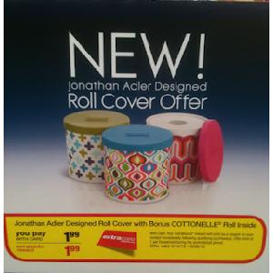 Through May 26, 2012, CVS has the Johnathan Adler Designed Cottonelle Roll Cover with Bonus Cottonelle Roll Inside priced at $1.99. If you have a CVS/Pharmacy extracare card, you'll get a $1.99 ExtraBucks reward that will print on your receipt immediately after your purchase, making it FREE! Limit 1 offer per household during the promotional period. Note: This is an unadvertised deal so it may not be available in all CVS stores.