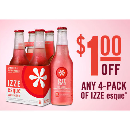 IZZE esque 4-pack .00 Off - Fans of IZZE's facebook page can print a coupon good for $1.00 off any 4-pack of IZZE esque.