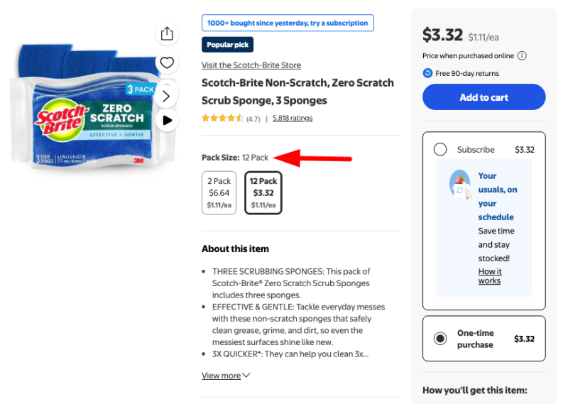 Don't miss this glitch price online at Walmart right now for a 12 PACK of 3-Count Scotch-Brite Non-Scratch Scrub Sponges for just $3.32! Order now for pickup or get free shipping with W+.