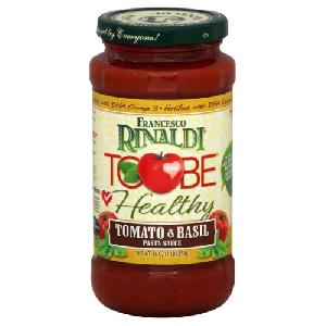 Francesco Rinaldi ToBe Healthy line of pasta sauces come in four varieties - Spicy Marinara, Tomato and Basil, Garden Vegetable, and Garlic and Onion.