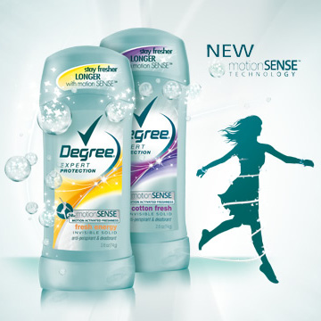 NEW Degree Women Expert Protection with motionSENSE is the only anti-perspirant/ deodorant formula activated directly by movement to release bursts of freshness.