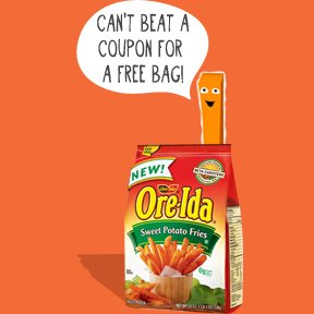 FREE Ore-Ida Fries Coupon - UPDATE:The Free bag coupon is no longer available. They are now offering a $1.00 off coupon. Ore-Ida is giving away a coupon good for a FREE bag of Sweet Potato Fries. Just become a fan of Ore-Ida and watch the short video on their facebook page to get your FREE product coupon mailed to you.