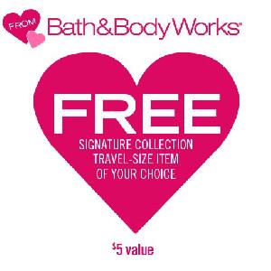 Free Bath & Body Works Item - Bath & Body Works is offering a Signature Collection travel-size item of your choice for FREE [$5 value]. Just print the coupon below and you'll be able to pick yours up at your local store through Feb 20th. No purchase required!