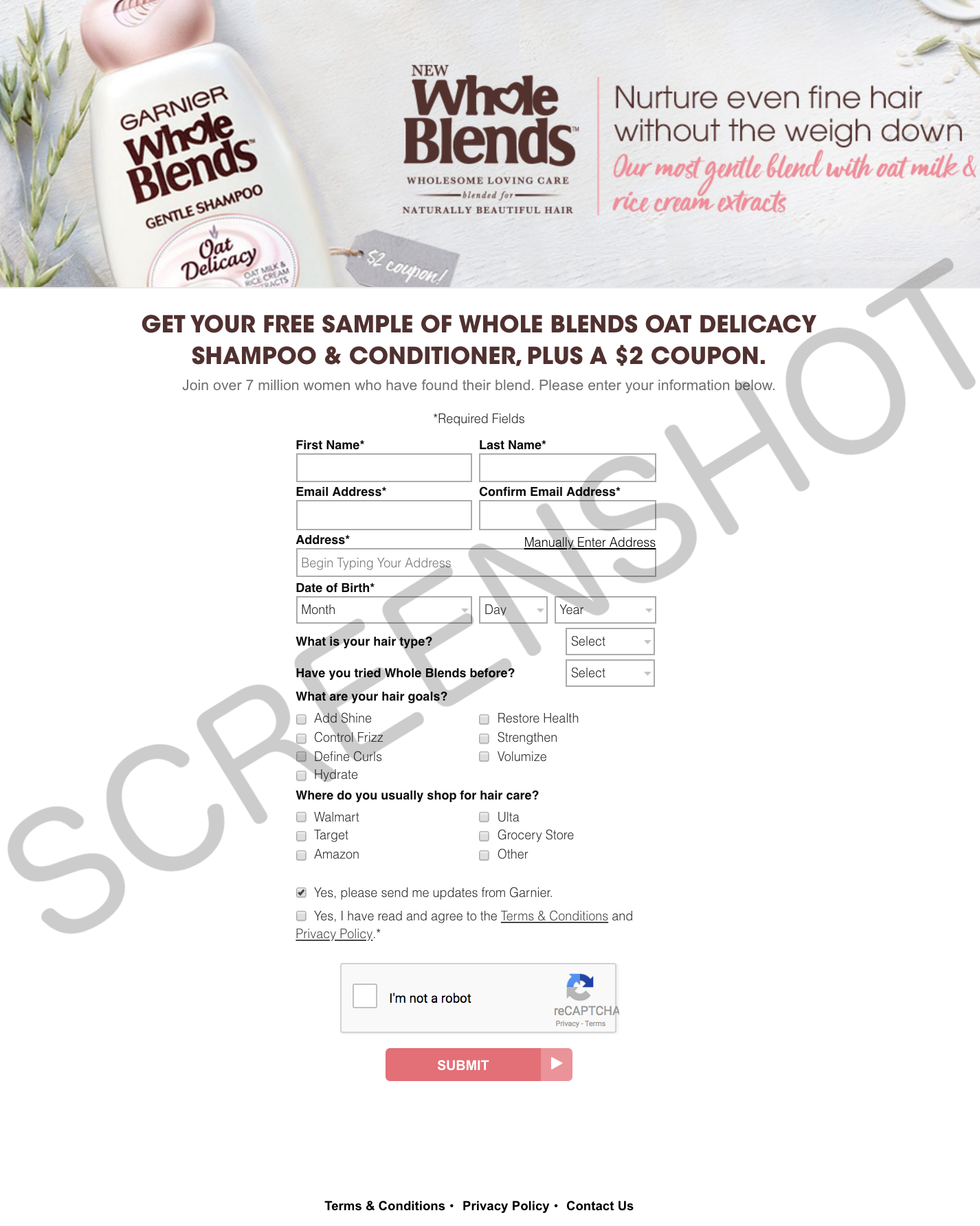 Garnier is offering up Free Whole Blends Oat Delicacy Shampoo and Conditioner Samples for a limited time! To get yours, click this link then fill out the form. Allow about 6 to 8 weeks for delivery. Offer is limited to the first 250,000 requests. Limit one per household.