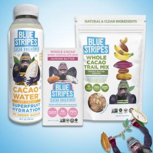 - Purchase any one (1) participating Blue Stripes product: Cacao Water, Whole Cacao Chocolate Bar, Chocolate Covered Cacao Beans, Whole Cacao Granola, Whole Cacao Trail Mix, or Dried Cacao Fruit.
