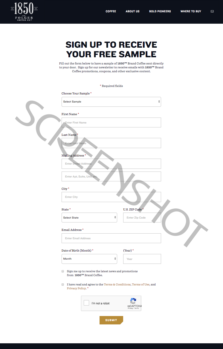 FREE 1850 Brand Coffee Sample + FREE Shipping