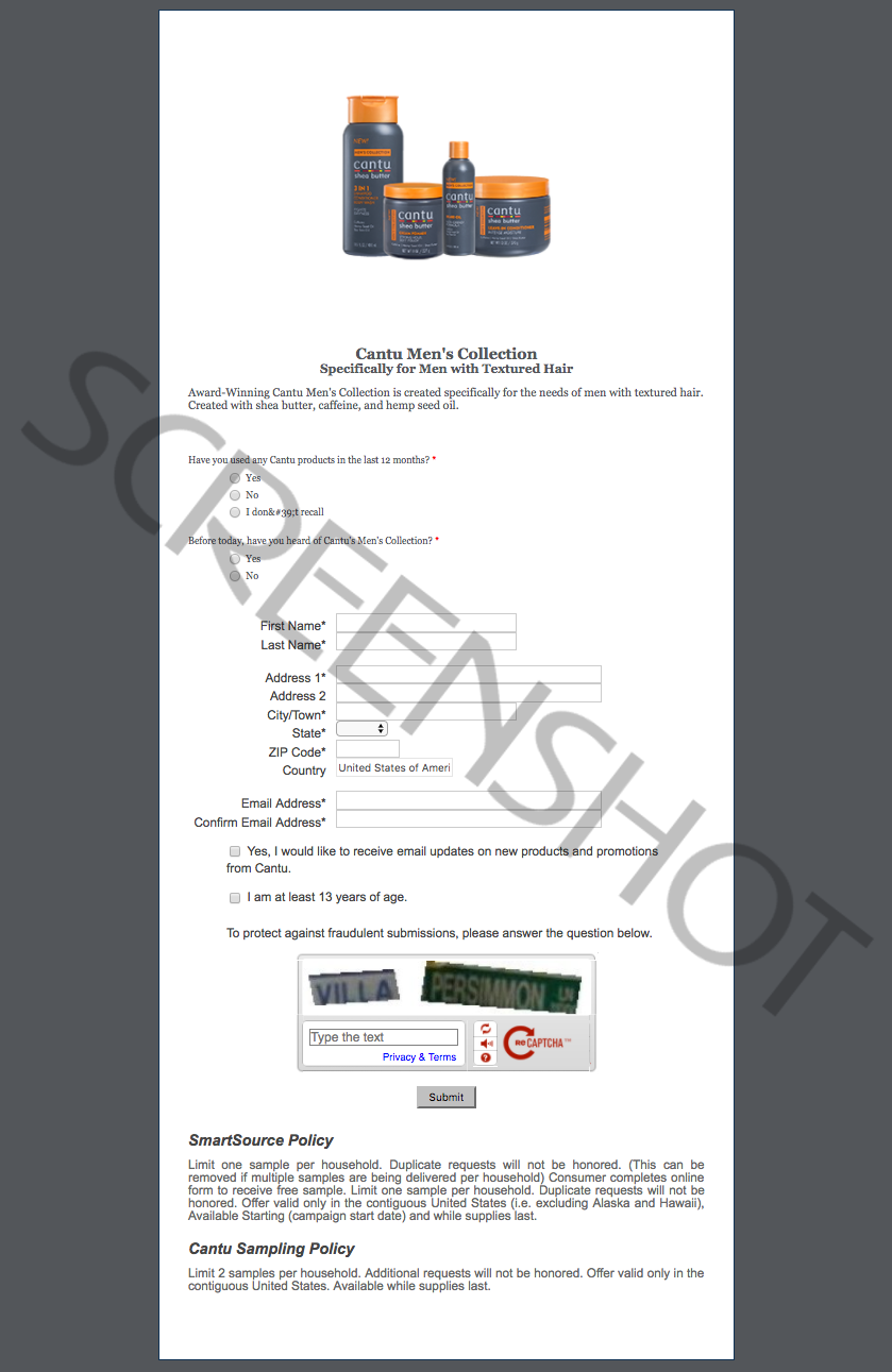 SmartSource is offering up FREE Samples of Cantu Men's Collection Specifically for Men with Textured Hair. Click this link then fill out the form to request yours today. This will only be available while supplies last. Allow 6-8 weeks for delivery. Limit 2 samples per household. Valid only in the contiguous United States. Thank you John!