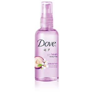 Hydrating mist leaves skin blissfully rebalanced and refreshed with the scents of succulent plum and pure sakura blossom. Infused with a hint of Dove moisturizer, it gives you a burst of long-lasting freshness anytime, anywhere.