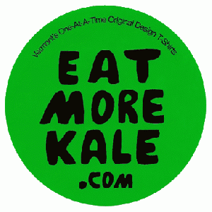 Vermont's one-at-a-time original design shirts, hand-printed by the eat more kale guy, Bo Muller-Moore. Eat More Kale is about supporting small business, business that actually cares and hasn't been swallowed up by the profit-hungry, corporate mentality. Bo is a one man show, so his shirts are distinctive, offbeat, one-of-a-kind works of art. When you see someone wearing one of his t-shirts you will instantly recognize it's personal style, character and the care he took to craft it.