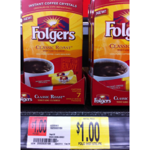 Free Folgers Coffee at Walmart - Want some free coffee? Walmart has the 7 count boxes of Folgers Instant Coffee Stick Packs priced at $1.00. You can get a printable coupon for $1.00 of ANY Folgers Coffee Product when you head over to the Walmart[.com] website and watch the short Breakfast Solutions video. Redeem the coupon at your local store to get your free box of coffee! Enjoy!