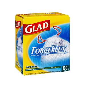Only Glad ForceFlex bags have Stretchable Strength technology. The unique diamond texture stretches around objects to prevent rips and tears. The 3-ply stretchable drawstring grips the can so the bag stay in place.