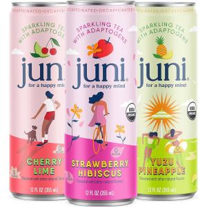Juni is an adaptogenic Sparkling Tea crafted with the best adaptogens and nootropics like reishi mushroom, green tea, ashwagandha, lion’s mane mushroom, and acerola cherry extract for a perfectly effervescent drink that inspires and enhances both your mind and body.