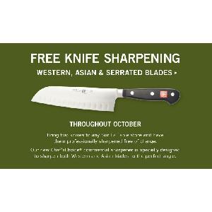 Free Knife Sharpening - During the month of October, Sur La Table is offering professional knife sharpening for western, asian and serrated blades for free.