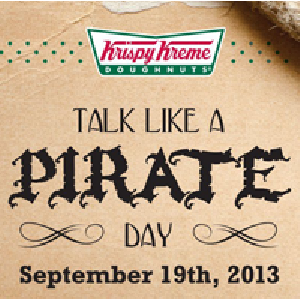Free Krispy Kreme Doughnuts 9/19 - National Talk Like A Pirate Day is September 19th and Krispy Kreme will be celebrating by giving away FREE Doughnuts. Talk like a pirate and you'll get one free Original Glazed doughnut. Dress like a pirate and you'll get one free dozen Original Glazed doughnuts. Let us know if you attend and we'd love for you to share your pics on the Vonbeau facebook page!