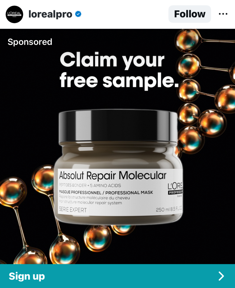 L'Oreal Professional is offering a FREE Sample of Absolut Repair Molecular Hair Mask through a sponsored ad on the social media. If you haven’t seen it yet, don’t worry. These types of offers are often targeted. Use our helpful tips below to boost your chances of spotting the ad in your feed.