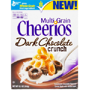 Delicious, wholesome multi grain cheerios combined with dark chocolate flavored o's and clusters. Made with real cocoa. 9 grams of sugar. 14 grams of whole grain per serving. Made with 5 different whole grains.