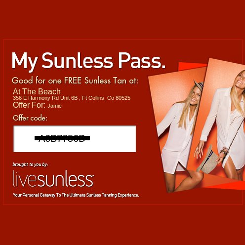 Free Sunless Tan Pass - LiveSunless is offering a FREE Sunless pass good for one FREE sunless spray tan (Mystic Tan or VersaSpa) at a participating salon.