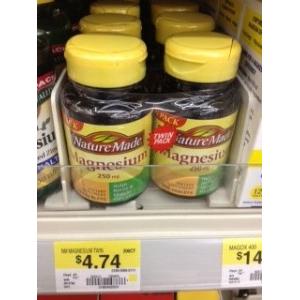 Free Magnesium at Walmart - Many Walmart stores have the twin pack [200ct] of nature Made magnesium priced at $4.74. Use the $5/1 any Nature Made vitamin product [over 160ct] and it'll be better than FREE!