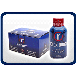 R3 Detox Boost is a 2 Ounce Shot packed with 22 Essential Vitamins, Minerals and Antioxidants. The R3 Daily Vitamin shot also contains a collection of herbal ingredients that aid in maintaining health, and detoxing the body.