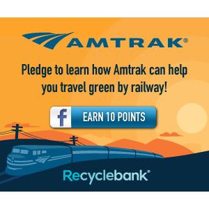 Pledge to learn how Amtrak can help you travel green by railway and earn 10 free Recyclebank points.