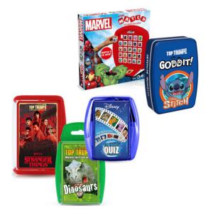 The classic Top Trumps card game is a family favorite across the world. To play, players are dealt cards featuring facts and stats about the subjects they love. Gather your squad for a new challenge with Top Trumps Match - the crazy cube game! Take it in turns to push out your opponent's cubes and replace them with your own to match a line of five. Top Trumps Quiz puts your knowledge about your passions to the test. With 500 questions to challenge even the nerdiest fan and a unique battle ready case, get ready to show your expertise, test your memory and win! Goddit is Top Trumps brand new game line! It’s a race of smarts and speed – 55 unique puzzle cards, endless challenges and zero time to waste! Flip a card, think fast, shout “Goddit” when you’ve cracked it and claim your victory. Quick to play, impossible to put down.