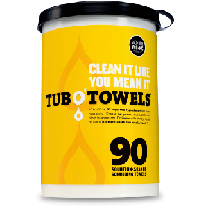Tub O'Towels are bigger, tougher and soaked with a knock-your-socks-off cleaning solution that overpowers even the most onerous grime.